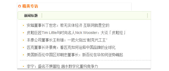 精英人物是鞋服行业网络中最高端、最全面、最有深度的专栏作者平台。中国鞋网人物频道聚集企业管理、设计开发、流通渠道、培训机构、专家学者等领先人物的精彩观点,热点文章,汇聚国内知名鞋服行业人士、专家学者、业界名人、经理人、设计师、模特、明星,是国内推广行业人士、传播人物动态、分享行业言论的专业性频道。